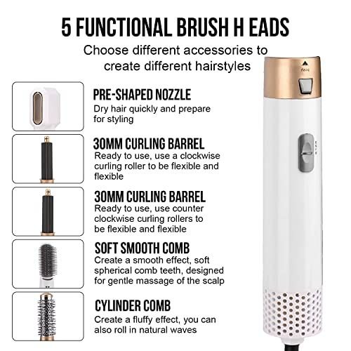 5 in 1 Hair Dryer Styling Tool: The hot air brush dryer for women comes with five interchangeable brush attachments that make straightening; curling; Combining blow drying with styling brushes; can fit different hair lengths and create different styles.